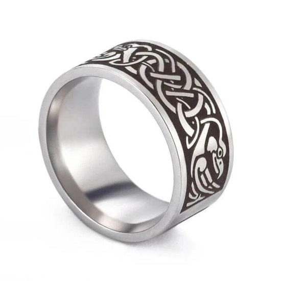 L'Anneau Celtique Corbeau d'Odin unit magistralement deux traditions ancestrales en un seul bijou chargé de symbolisme. Sur cet anneau en acier inoxydable 304, les silhouettes des corbeaux sacrés d'Odin se détachent fièrement, entourées des entrelacs celtiques qui symbolisent l'infini et la continuité. Dans la mythologie nordique, Hugin représente la pensée tandis que Munin incarne la mémoire. Ces deux corbeaux s'envolaient chaque matin depuis les épaules d'Odin pour explorer Midgard et les autres royaumes, revenant au crépuscule murmurer à l'oreille du dieu tout-puissant ce qu'ils avaient vu et entendu. Porter cet anneau, c'est invoquer cette même sagesse, cette capacité d'observation et cette quête perpétuelle de connaissance. Les nœuds celtiques qui encadrent ces gardiens ailés ajoutent une dimension spirituelle, évoquant les bénédictions et la protection des anciennes cultures. La gravure en relief crée un contraste saisissant entre les zones polies et oxydées, donnant vie aux corbeaux qui semblent prêts à prendre leur envol.